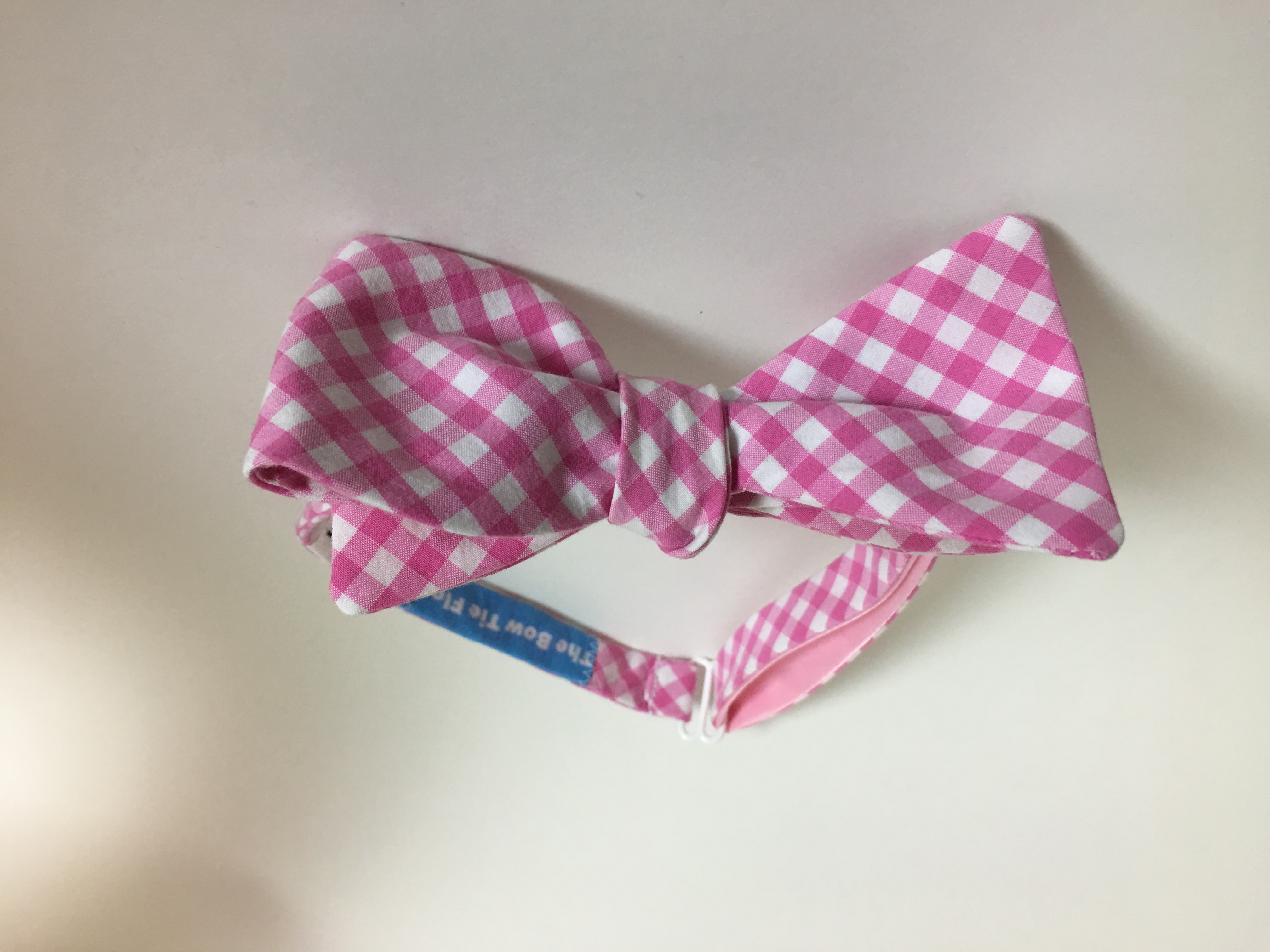 100% cotton and before becoming a bow tie it was a button down shirt that became too small for it's owner.