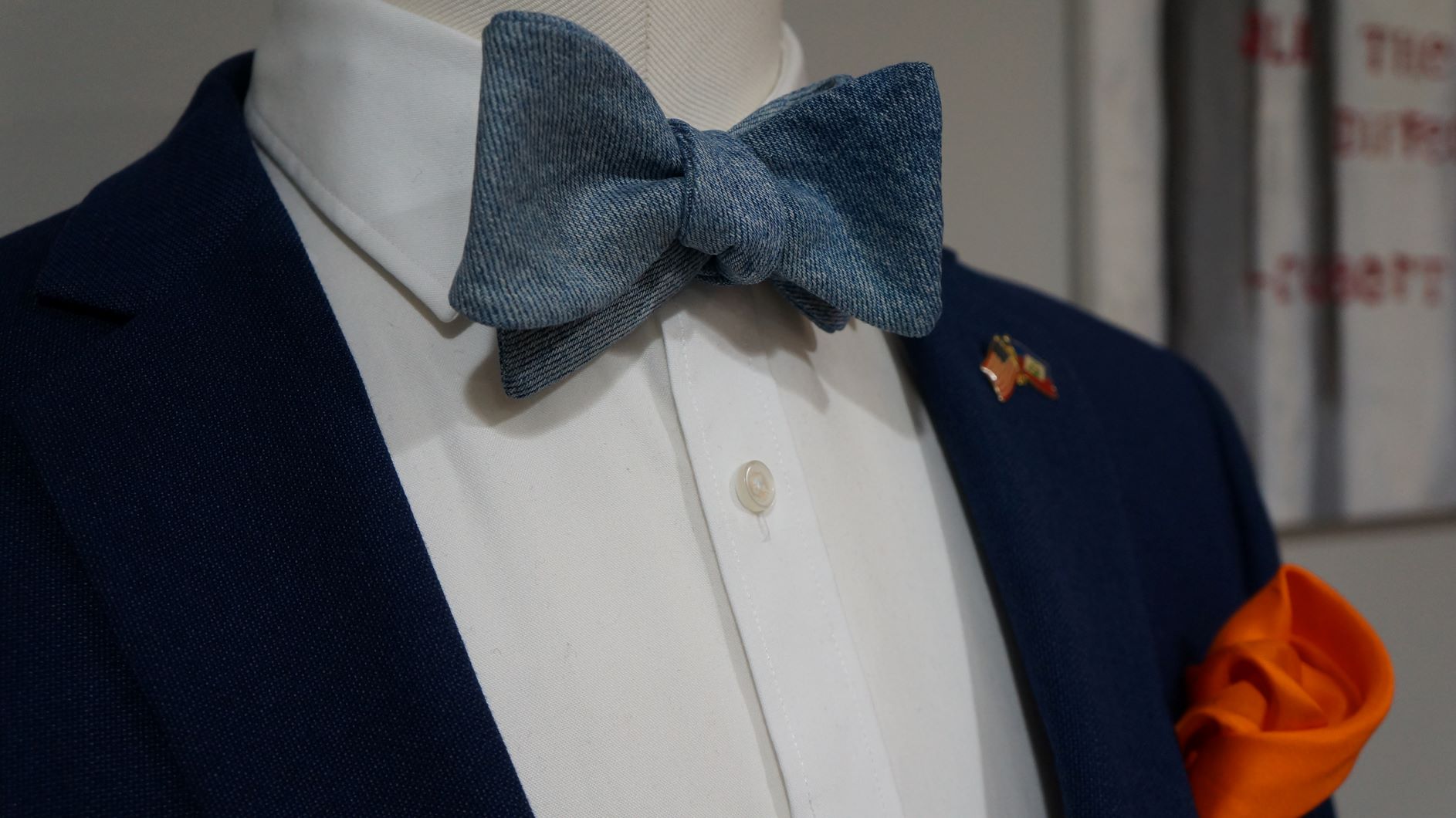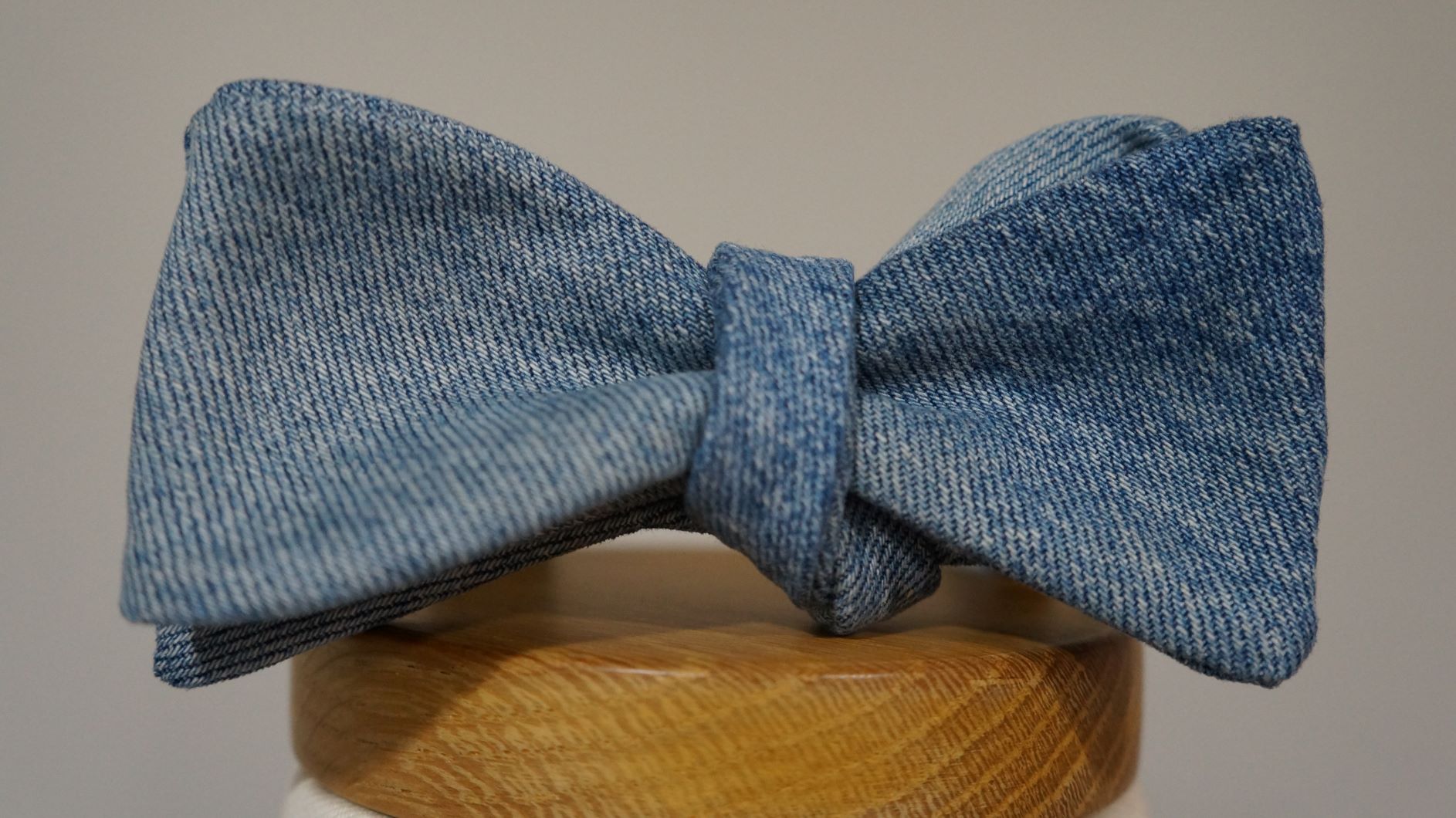 Designed from a pair of light denim jeans. They are now up-cycled to bow ties just for you.